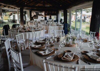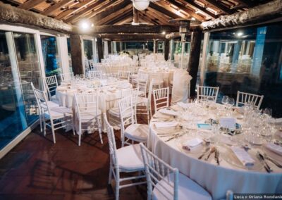 Mantiene inalterato il fascino dell’antica Tenuta, pur essendo dotata di ogni comfort. La location è un corpo unico con Il vasto e ampio porticato chiuso da vetrate apribili che garantiscono anche con il maltempo la massima protezione e che d’inverno permettono di godere appieno del riscaldamento mantenendo inalterata la vista sulla natura circostante.