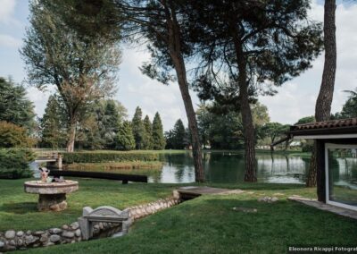 La natura circostante è meravigliosa. L’atmosfera è davvero senza tempo: cascate, ruscelli che si intrecciano, piccoli e grandi ponticelli di legno avvolgono la Tenuta nei 100.000 mq di parco. Tenuta di Santa Croce è sicuramente la scelta ideale per chi desidera vivere appieno la natura. L’ isolotto lussureggiante quasi al centro del lago è raggiungibile da un ponticello di legno.
